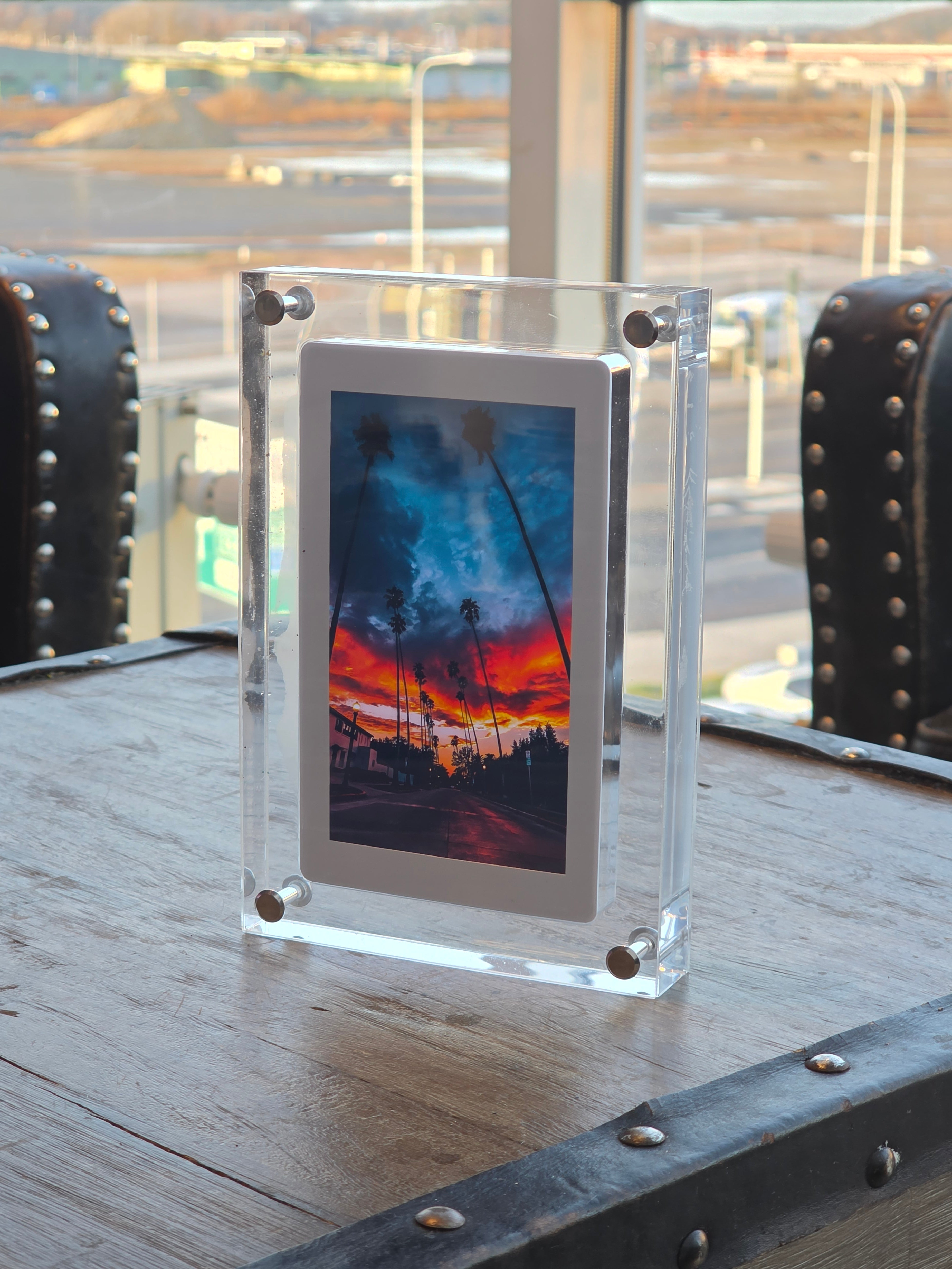 Each AcriaFrame™ comes with a USB-C charging cable. Simply plug it into any power adapter, computer, or power bank. A full charge gives you several hours of playback.